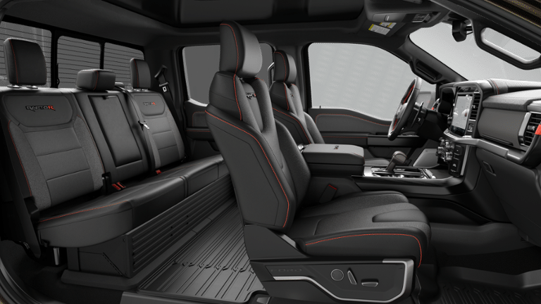 Equipment Group 803A Raptor R: Raptor R Exterior Graphics; Electronic Locking with 4.10 Axle Ratio; 7 500 lbs GVWR; Interior Code Orange Raptor R Badging; Raptor R Exterior Theme; Modular Front Bumper; Electronic 10-Speed Automatic Transmission; Removes 2KW Pro Power Onboard; 5.2L Supercharged V8 Engine; Raptor R Unique Hood Vent with R Badge; B&O Unleashed Sound System by Bang & Olufsen Radio; Raptor R Interior Theme; Unique Carbon Fiber Appliques; Raptor R Unique Grille; Dual Valve Shocks; Raptor R Badge Tailgate Applique; RECARO with Code Orange Stitching Front Seats; Code Orange Stitching Doors and Instrument Panel; Raptor R Unique 17" Forged Aluminum Wheels; 37x12.5R17 BSW All-Terrain Tires; Code Orange Front Tow Hooks; Upgraded Dual Exhaust Twin Panel Moonroof Ford Connectivity Package (one-Time Purchase - 7 Years) Tough Bed Spray-In Bedliner Driver's Side SecuriCode Keyless-Entry Keypad Shelter Green **Equipment listed is based on original vehicle build and subject to change. Please confirm the accuracy of the included equipment by calling the dealer prior to purchase.**