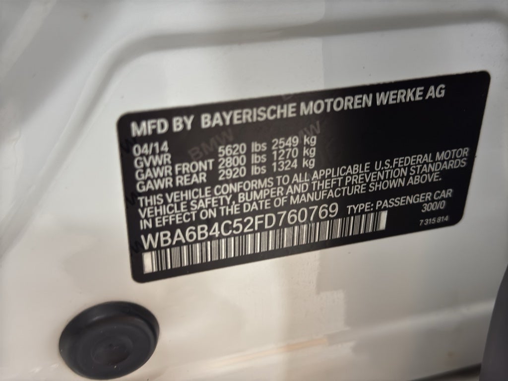 This 2015 BMW 6 series features a hands-free Bluetooth® phone system. The vehicle has a clean CARFAX vehicle history report. The BMW 6 series offers Automatic Climate Control for personalized comfort. The vehicle's Lane Departure Warning helps keep you in your lane. The state of the art park assist system will guide you easily into any spot. The leather seats in this BMW 6 series are a must for buyers looking for comfort, durability, and style. Protect the vehicle from unwanted accidents with a cutting edge backup camera system. The installed navigation system will keep you on the right path. Maintaining a stable interior temperature in this BMW 6 series is easy with the climate control system. This BMW 6 series shines with clean polished lines coated with an elegant white finish. Conquer any rainy, snowy, or icy road conditions this winter with the all wheel drive system on this unit.