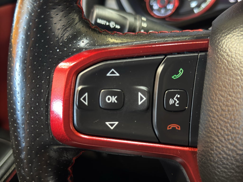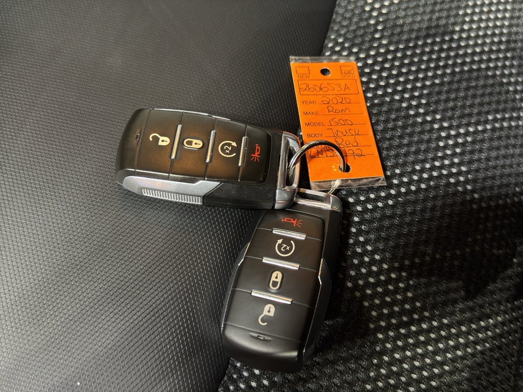 Half ton trucks are the most functional trucks for all purposes. When you encounter slick or muddy roads, you can engage the four wheel drive on this unit and drive with confidence. The gas and brake pedals adjust allowing you to fine-tune them for personal fit and comfort. This Ram 1500 offers Android Auto for seamless smartphone integration. The vehicle offers Apple CarPlay for seamless connectivity. This vehicle keeps you comfortable with Auto Climate. It has an automatic transmission. Protect the vehicle from unwanted accidents with a cutting edge backup camera system. This vehicle is a certified CARFAX 1-owner. Our dealership has already run the CARFAX report and it is clean. A clean CARFAX is a great asset for resale value in the future. Maintaining a stable interior temperature in this vehicle is easy with the climate control system. This 1/2 ton pickup features cruise control for long trips. The Electronic Stability Control will keep you on your intended path. It has a V8, 5.7L high output engine. This vehicle has fog lights for all weather conditions. Enjoy the tried and true gasoline engine in this model. This vehicle features a hands-free Bluetooth® phone system. This model is pure luxury with a heated steering wheel. With the keyless entry system on it you can pop the trunk without dropping your bags from the store. Help alleviate lower back pain with the driver seat lumbar support in it. The rear parking assist technology on this Ram 1500 will put you at ease when reversing. The system alerts you as you get closer to an obstruction. The Ram 1500 gleams with a flashy red exterior. Start this vehicle from inside with remote start.