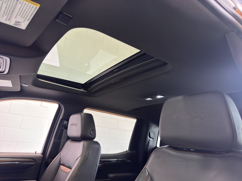 AT4 Premium Package: Off-Road High Clearance Step. Technology Package: Multi-Colour 15" Diagonal Head-Up Display; Bed View Camera; Rear Camera Mirror. Sierra Safety Plus Package: Rear Cross Traffic Braking; HD Surround Vision; Trailer Side Blind Zone Alert; Rear Pedestrian Alert; Ultrasonic Front and Rear Park Assist; Trailer Camera Provisions. Preferred Equipment Group 4SB: Perforated Leather Front Seat Trim; 3.23 Rear Axle Ratio; Electric Rear-Window Defogger; Theft Deterrent System (unauthorized Entry); Black Chrome Header and Grille Insert Bars; Front Rain-Sensing Wipers; Heavy-Duty Air Filter; Skid Plates; Compass; Heated Steering Wheel; 120-Volt Instrument Panel Power Outlet; Wireless Charging; Front Bucket Seats; Front Premium Floor Liners with Removable Ca