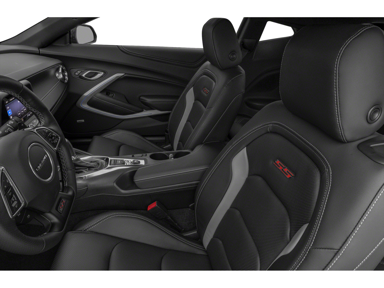 Redline Edition: Redline Edition Graphics; Red Knee Pads; 20" X 8.5" Front and 20" X 9.5" Rear Aluminum Wheels; Black Camaro Emblem Fender Badge with Red Outline; Red Seat Belt Color. Preferred Equipment Group 1SS. Black Wheel Lug Nuts and Locks Package: Black Wheel Locks; Black Lug Nuts. Power Sunroof. Dual Mode Exhaust. Black 6.2L Strut Tower Brace. Red-Painted Calipers. Red Knee Pads. Black Lug Nuts. Red Seat Belt Color. Black Wheel Locks. Front License Plate Bracket. **Equipment listed is based on original vehicle build and subject to change. Please confirm the accuracy of the included equipment by calling the dealer prior to purchase.**