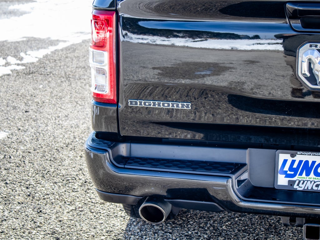 Quick Order Package 27Z Big Horn: Big Horn Badge. Big Horn Level 1 Equipment Group: Google Android Auto; Bluetooth® Handsfree Phone and Audio; USB Host Flip; Rear Window Defroster; Integrated Center Stack Radio; Rear View Auto Dim Mirror; For Details. Visit DriveUconnect.com; For More Info. Call 800-643-2112; Rear Power Sliding Window; Rear Dome with On/off Switch Lamp; Front Fog Lamps; Connectivity - US/Canada; Glove Box Lamp; 4G LTE Wi-Fi Hot Spot; GPS Antenna Input; Exterior Mirrors with Heating Element; Auto Dim Exterior Driver Mirror; Heated Front Seats; Uconnect 5 W Radio with 8.4" Display; Heated Steering Wheel; 8.4" Touchscreen Display; Black Exterior Mirrors; Class IV Receiver Hitch; Black Premium Power Mirrors; Apple CarPlay; Big Horn Instrument Panel Badge; SiriusXM Satellite Radio; Exterior Mirrors with Supplemental Signals; Exterior Mirrors Courtesy Lamps; Passenger Sun Visor with Illuminated Mirror; Electric Shift on Demand Transfer Case; Power-Folding Mirrors; Convex Wide-Angle Mirror Insert. Sport Appearance Package: 275/55R20 OWL All Season Tires; Deluxe Cloth Bucket Seats; Exterior Mirrors with Supplemental Signals; Body Color Premium Power Mirrors; Sport Decal; Body Color Door Handles; Exterior Mirrors Courtesy Lamps; RAM Grille Badge - Chrome; Exterior Mirrors with Heating Element; Auto Dim Exterior Driver Mirror; Body Color Exterior Mirrors; Grille Surround 1 Body Color Texture 2 Black; Black Interior Accents; Power-Folding Mirrors; Body Color Front Bumper; Convex Wide-Angle Mirror Insert; Body Color Rear Bumper with Step Pads. Quick Order Package 23Z Big Horn: Big Horn Badge. 20" X 9" Aluminum Chrome Clad Wheels. Deluxe Cloth Bucket Seats. Remote Start System. Diamond Black Crystal PC. **Equipment listed is based on original vehicle build and subject to change. Please confirm the accuracy of the included equipment by calling the dealer prior to purchase.**