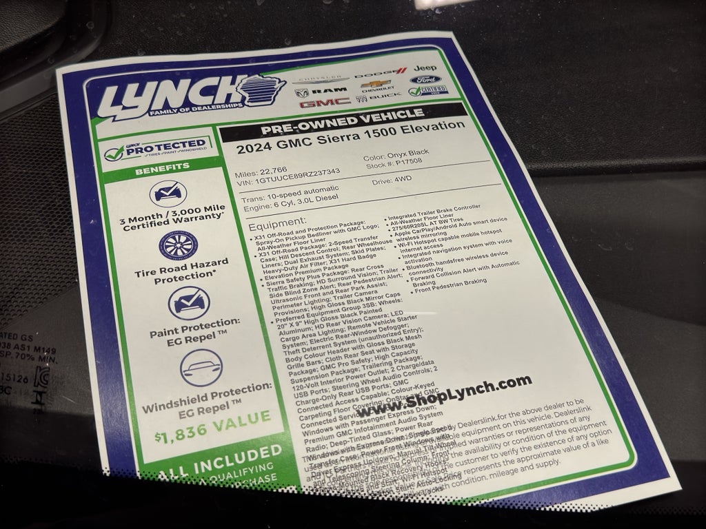 This GMC Sierra 1500 Elevation is competitively priced to sell — listed at the best price for similar local inventory — making it an outstanding opportunity for buyers seeking capability, comfort, and value in one package. Whether you need a versatile daily driver, a capable work truck, or an adventure-ready rig, this GMC checks the boxes. Schedule a test drive in Burlington, WI today and experience the combination of diesel efficiency, 4WD confidence, and premium features firsthand.