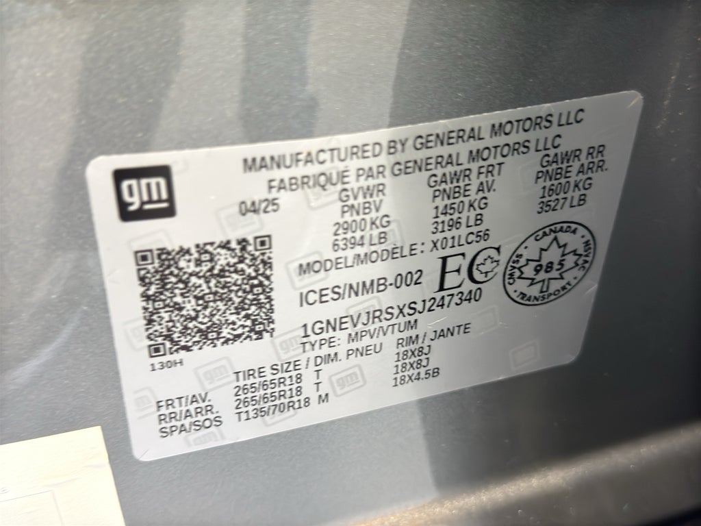 Driver Confidence Package: HD Surround Vision; Rear Pedestrian Alert; Traffic Sign Recognition; 120-Volt Power Outlet. Enhanced Driving Package: Bose Premium 12-Speaker Audio System Feature; Enhanced Automatic Parking Assist; Super Cruise; Driver Attention Assist; Rear Camera Mirror. Preferred Equipment Group 2Z7: 2.5L DOHC SIDI Engine with Variable Valve Timing; 265/65R18SL All-Terrain Blackwall Tires; Evotex Seat Trim; 6. 394 lbs (2. 900 Kgs) GVWR; Front Bucket Seats; 17.7" Diagonal Display Radio; 8-Speed Automatic Transmission