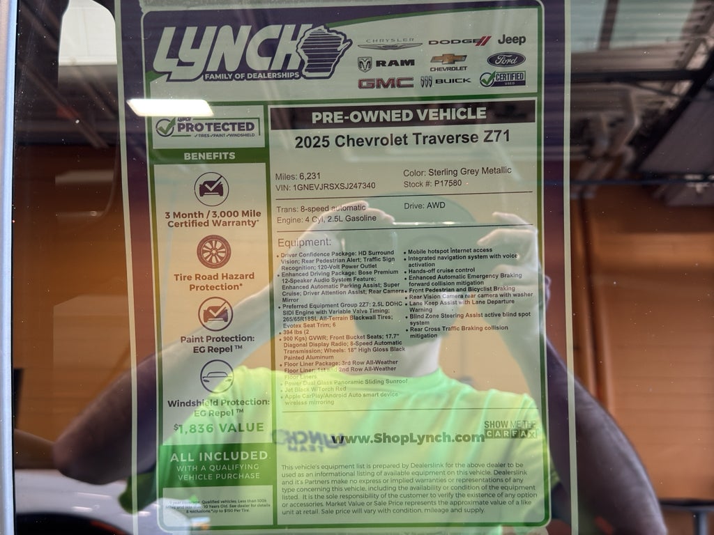Practicality meets versatility with spacious seating and cargo capacity, making this Chevrolet Traverse ideal for families, outdoor enthusiasts, or anyone seeking a well-equipped crossover with modern conveniences. Routine maintenance and careful ownership history support its exceptional condition. Located in Burlington, WI, this 2025 Chevrolet Traverse Z71 is a compelling choice for buyers who want low mileage, contemporary safety systems, and comfort-focused features in a capable AWD package. Schedule a test drive to experience its balanced performance and refined interior firsthand.