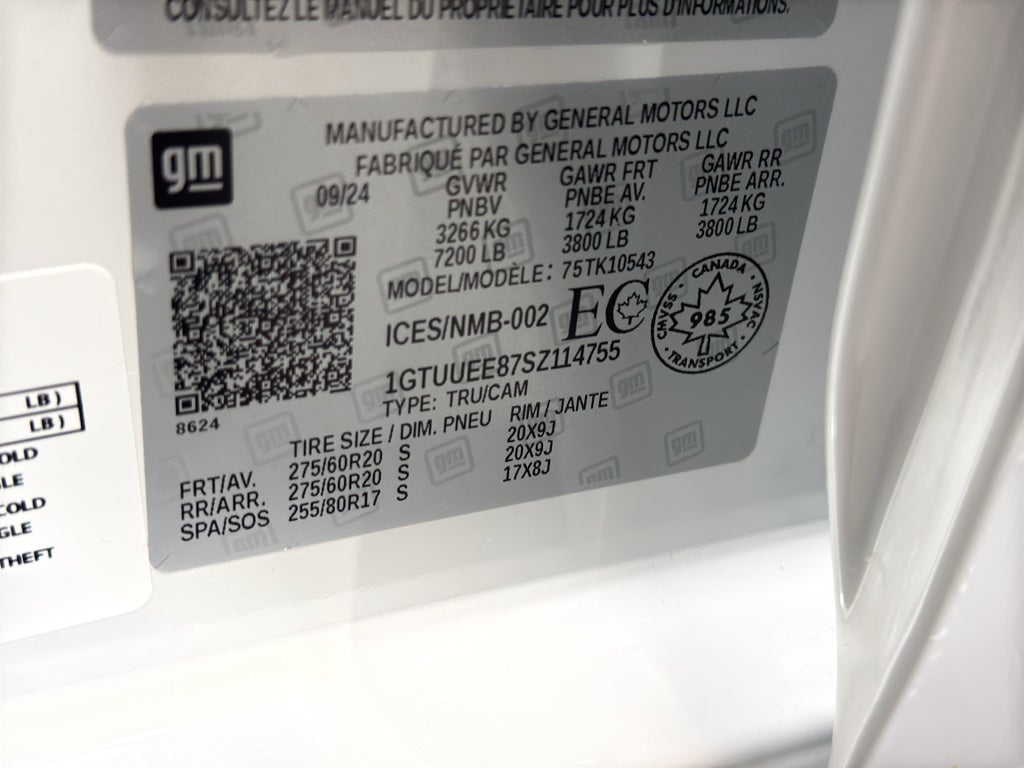 AT4 Premium Package. Preferred Equipment Group 4SB: Trailer Side Blind Zone Alert; Perforated Leather Front Seat Trim; 3.23 Rear Axle Ratio; Ultrasonic Front and Rear Park Assist; Trailer Camera Provisions; Electric Rear-Window Defogger; Theft Deterrent System (unauthorized Entry); Black Chrome Header and Grille Insert Bars; Front Rain-Sensing Wipers; Heavy-Duty Air Filter; Skid Plates; 120-Volt Interior Power Outlet; Wireless Charging; Front Bucket Seats; Front Premium Floor Liners with Removable Carpet Insert; 10-Speed Automatic Transmission; Colour-Keyed Carpeting Floor Covering; OnStar Services Capable; Heated 2nd Row Outboard Seats; Power Front Passenger Windows with Express Up/down; Power Rear Windows with Express Down; Integrated Trailer Brake Controller; HD Surround Vision; Power Rake and Telescoping Steering Column; 275/60R20SL AT BW Tires; Keyless Open and Start; Perimeter Lighting; Push Button Start; LED Cargo Area Lighting; Remote Vehicle Starter System; In-Vehicle Trailering System App; Hill Descent Control; 7. 200 lbs (3. 266 Kgs) GVWR; Floor-Mounted Centre Console; Rear Cross Traffic Braking; GMC Pro Safety; Trailering Package; 2 USB Ports; 2 Charge/data USB Ports Inside Centre Console; Off-Road Suspension with 2" Factory Installed Lift; Steering Wheel Audio Controls; 2 Charge-Only Rear USB Ports; Duramax 3.0L Turbo-Diesel I6 Engine; Premium GMC Infotainment Audio System Radio; 2-Speed Transfer Case; Deep-Tinted Glass; Spray-On Pickup Bedliner with GMC Logo; Red Recovery Hooks; Hitch View; Power Front Windows with Driver Express Up/down; Rear Pedestrian Alert; Wi-Fi Hotspot Capable; Rear Wheelhouse Liners; 20" X 9" Machined Aluminum Wheels; Auto-Locking Rear Differential; Power Door Locks. AT4 Preferred Package: Power Sliding Rear Window with Rear Defogger; Universal Home Remote. Off-Road High Clearance Steps. Power Sunroof. Front and Rear Black Moulded Splash Guards. **Equipment listed is based on original vehicle build and subject to change. Please confirm the accuracy of the included equipment by calling the dealer prior to purchase.**AT4 Premium Package. Preferred Equipment Group 4SB: Trailer Side Blind Zone Alert; Perforated Leather Front Seat Trim; 3.23 Rear Axle Ratio; Ultrasonic Front and Rear Park Assist; Trailer Camera Provisions; Electric Rear-Window Defogger; Theft Deterrent System (unauthorized Entry); Black Chrome Header and Grille Insert Bars; Front Rain-Sensi